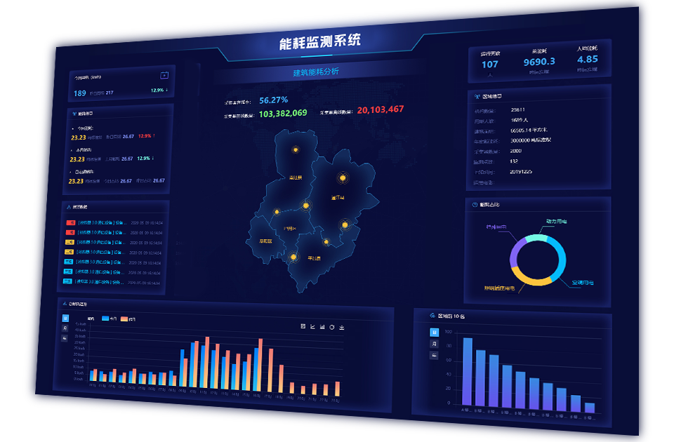 豐富的可視化數據模型和圖表,一屏全覽能源消耗情況。